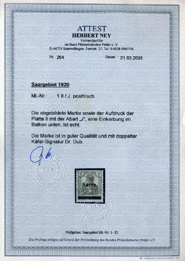 | Prüfgebiet: | Saargebiet (Mi-Nr. 1 - 205) |