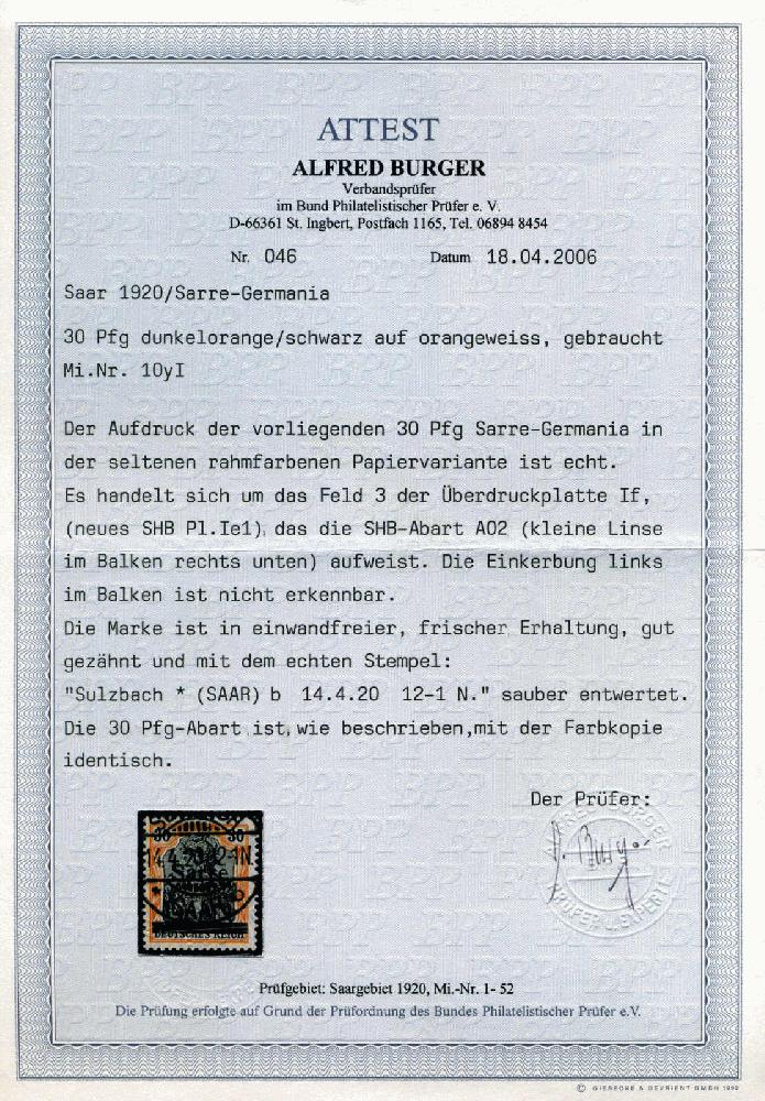 | Prüfgebiet: | Saargebiet (Mi-Nr. 1 - 205) |