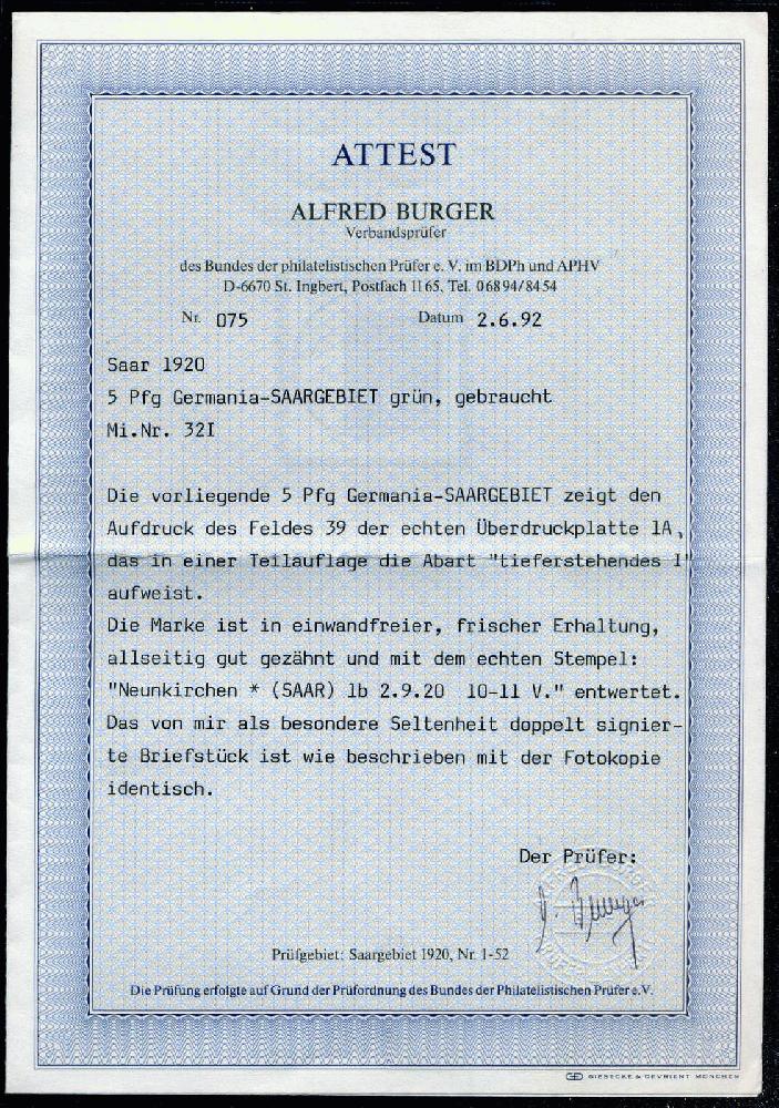 | Prüfer: | Burger, Alfred (BPP (Bund Philatelistischer Prüfer)) |