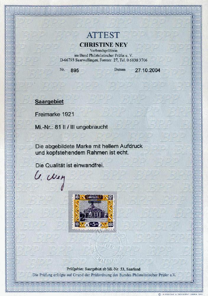 | Prüfer: | Ney, Christine (BPP (Bund Philatelistischer Prüfer)) |