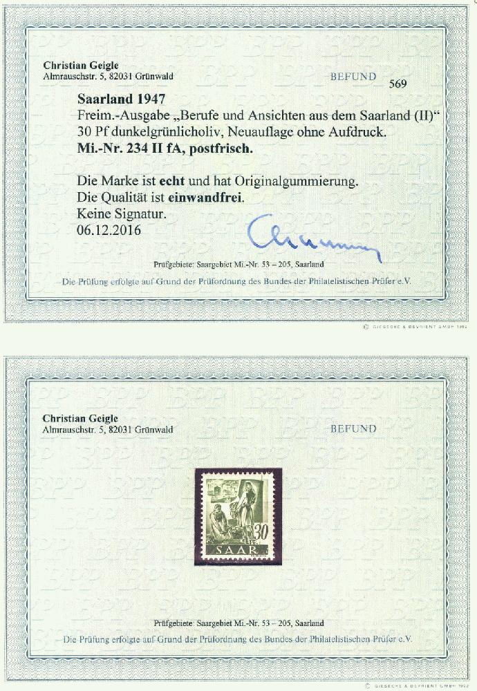 | Prüfgebiet: | Saarland (ab Mi-Nr. 206) |