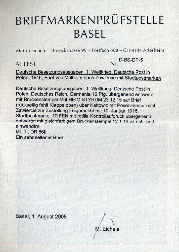 | Prüfgebiet: | Deutsche Besetzung WK 1 Polen - Lokalpost |