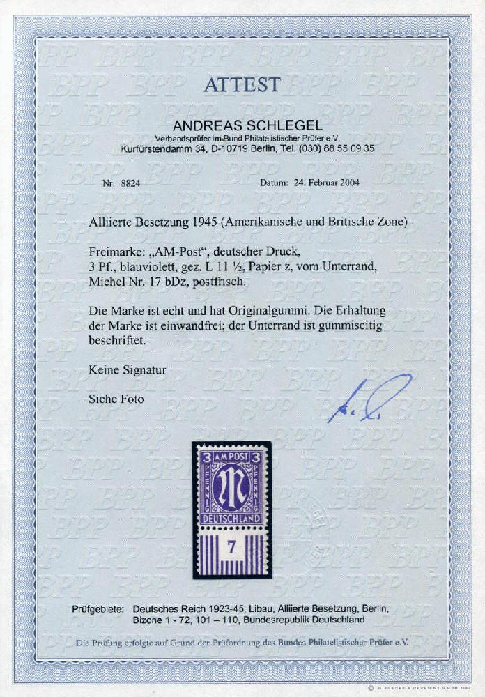 | Prüfer: | Schlegel, Andreas (BPP (Bund Philatelistischer Prüfer)) |