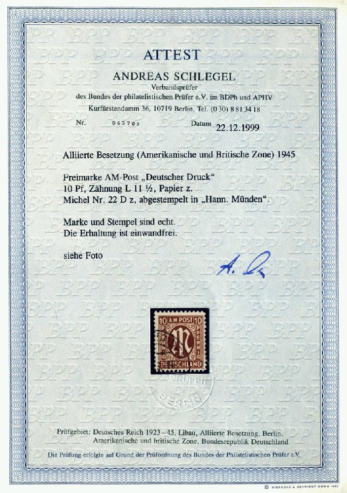 | Prüfer: | Schlegel, Andreas (BPP (Bund Philatelistischer Prüfer)) |