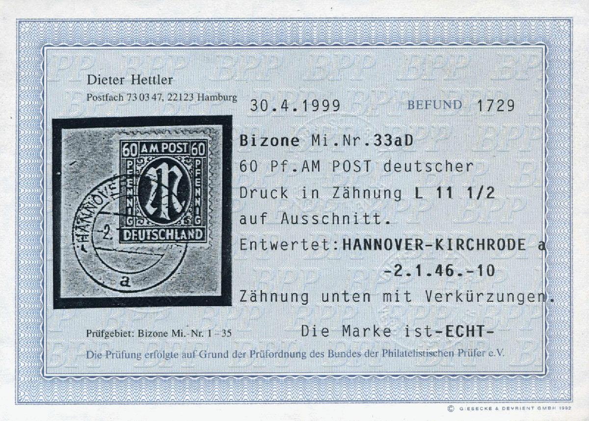 | Prüfgebiet: | Alliierte Besetzung Bizone |