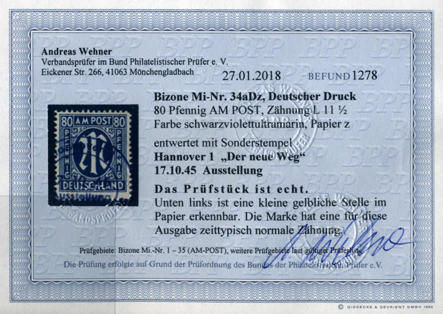 | Prüfer: | Wehner, Andreas (BPP (Bund Philatelistischer Prüfer)) |