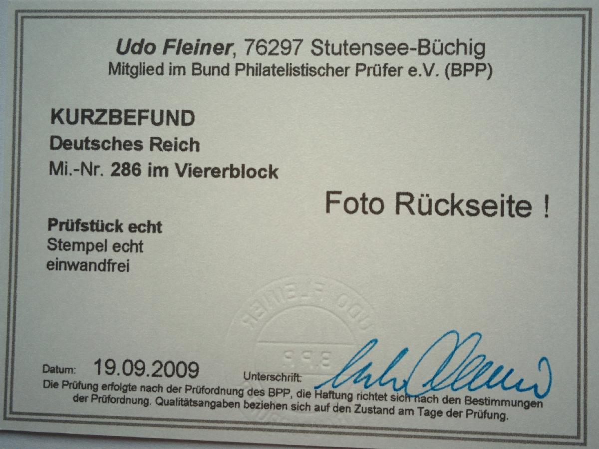 | Prüfer: | Fleiner, Udo (BPP (Bund Philatelistischer Prüfer)) |