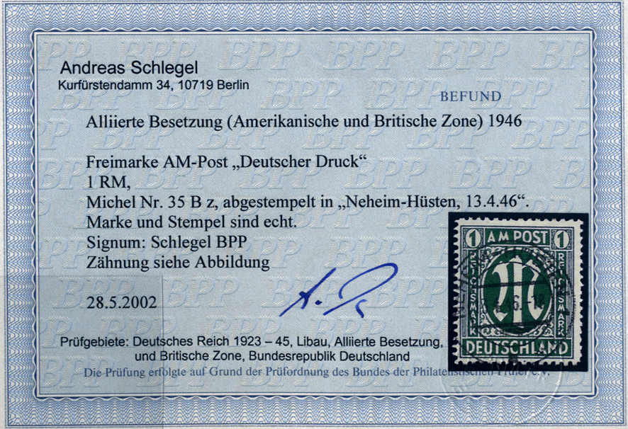 | Prüfer: | Schlegel, Andreas (BPP (Bund Philatelistischer Prüfer)) |