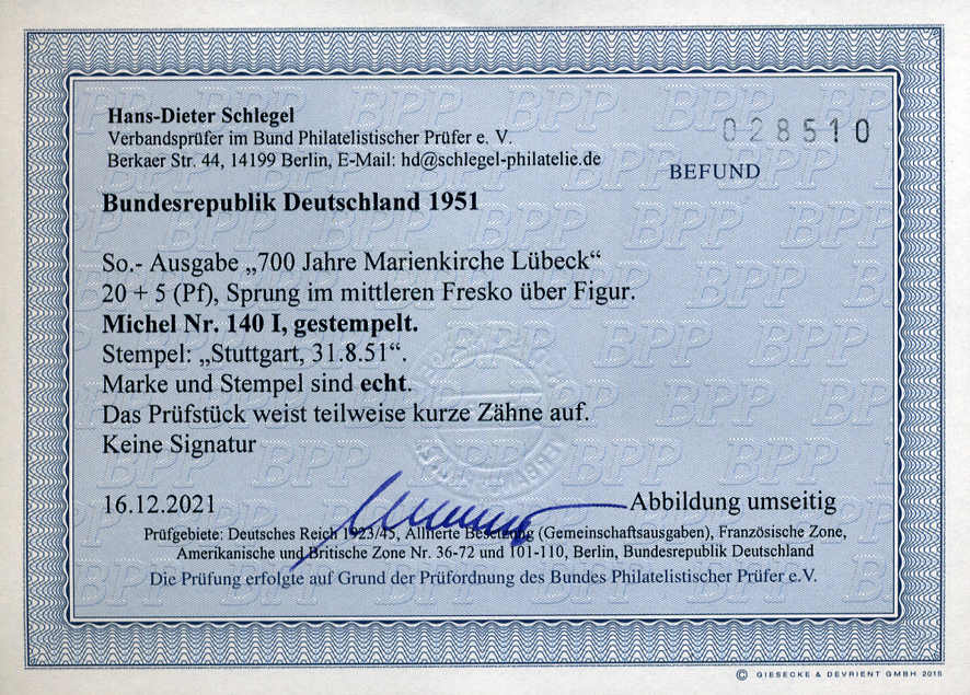 | Prüfer: | Schlegel, Hans-Dieter (BPP (Bund Philatelistischer Prüfer)) |