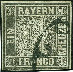 | Zusatzinformationen und Suchstichworte: | 378. Auktion Heinrich Köhler 21.-26. März 2022 Los 7017 1 Kreuzer schwarz, Platte II, farbfrisch und meist voll-bis breitrandig, lediglich unten rechts kurz berührt, sauber entwertet durch Halbkreisstempel von Lohr. Links unten kleine Schürfung des Randes mit Farbe nachgetupft, sonst einwandfrei. Bei Helbig/Vogel ist nur eine weitere Nr. 1 mit Ortsstempel von Lohr registriert. Fotoattest Sem BPP (2022) Zuschlag 750,00 EUR |