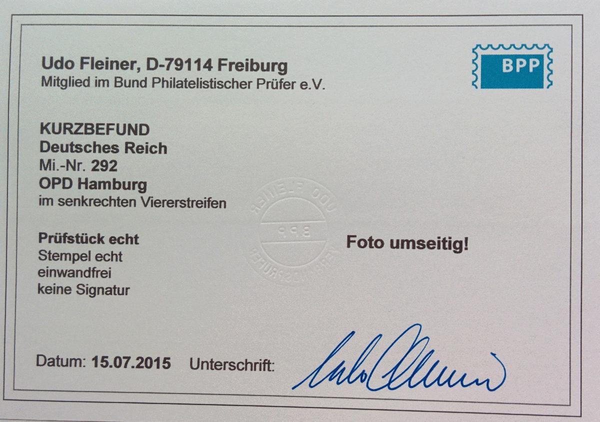 | Zusatzinformationen und Suchstichworte: | Gestempelt, OPD Hamburg, senkrechter Viererstreifen |