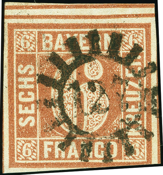 | Zusatzinformationen und Suchstichworte: | 378. Auktion Heinrich Köhler 21.-26. März 2022 Los 7028 1849, 6 Kreuzer braunorange, oben mit vollständiger doppelter Trennungslinie, unten rechts kurz berührt, sonst voll-bis breitrandig und farbfrisch, sauber entwertet durch gMR "127" HERSBRUCK; seltenes Stück Stück in sonst tadelloser Erhaltung. Signiert Brettl BPP und Fotobefund Sem BPP (2022) Zuschlag 200,00 EUR |
