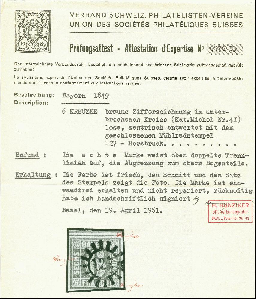 | Prüfer: | Hunziker, Hans (SBPV / ASEP (Schweizerischer Briefmarken-Prüfer-Verband)) |