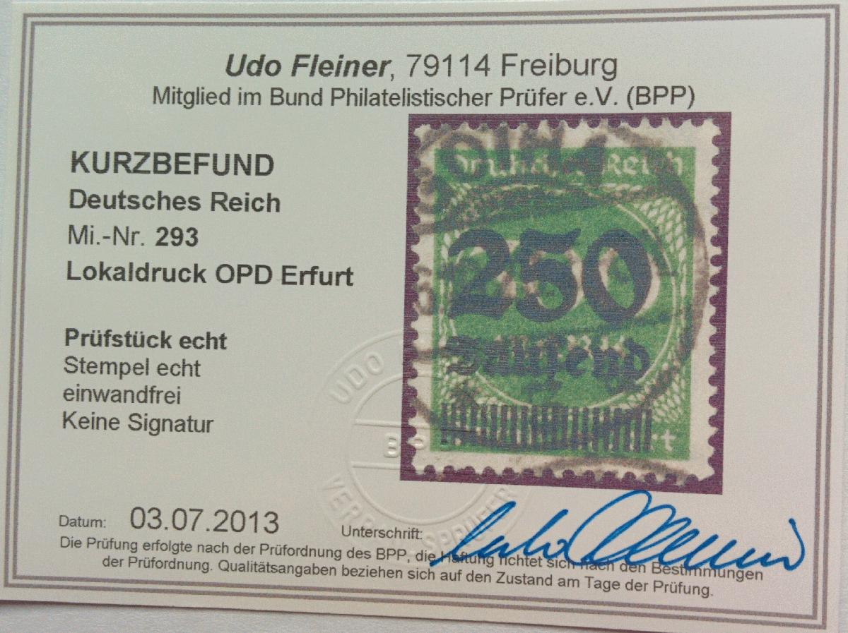 | Prüfgebiet: | Deutsches Reich 1919 - 1923 (Mi-Nr. 107 - 343) |