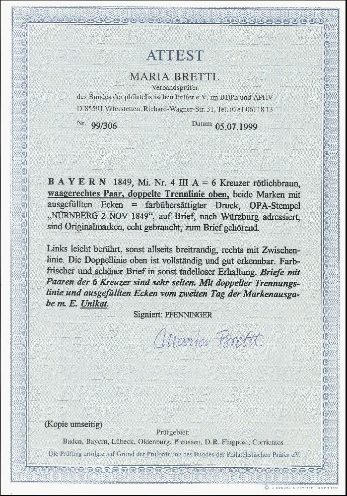 | Prüfer: | Brettl, Maria (BPP (Bund Philatelistischer Prüfer)) |