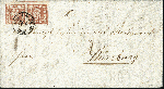 | Zusatzinformationen und Suchstichworte: | 378. Auktion Heinrich Köhler 21.-26. März 2022 Los 7032 6 Kreuzer braunorange mit ausgefüllten Ecken im waagerechten Paar, links leicht berührt, sonst voll-bis sehr breitbandig, oben mit fast vollständiger doppelter Trennungslinie, mit sauber aufgesetzten Doppelkreisstempel “NÜRNBERG 2 NOV.1849“ auf komplettem Faltbrief der zweiten Gewichtsstufe nach Würzburg. Die Faltungen einer Seitenklappe getrennt, sonst einwandfreie und schöne Erhaltung. Schon normale Paare dieser Marke sind auf Brief selten, mit der doppelten Trennungslinie und vom zweiten Verwendungstag der bayerischen Marken zweifellos ein einmaliges und bedeutendes Stück der Bayern-Philatelie. Zuschlag 38.000,00 EUR |