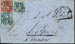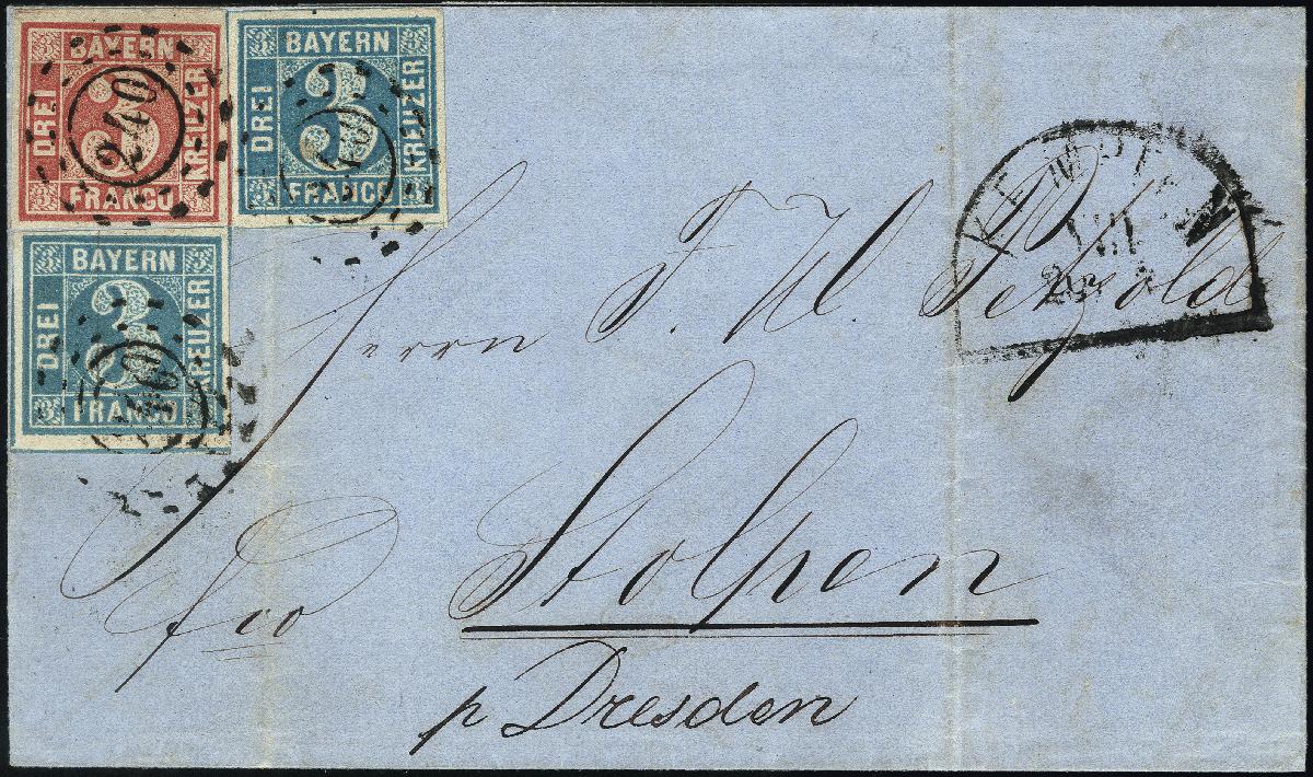 | Zusatzinformationen und Suchstichworte: | 378. Auktion Heinrich Köhler 21.-26. März 2022 Los 7037 3 Kreuzer blau, Platte 5, zwei Einzelwerte in wertstufengleicher Mischfrankatur mit 1862, 3 Kreuzer rosa, alle voll- bis breitrandig und sauber entwertet durch oMR "240" auf Faltbrief mit nebengesetztem Halbkreisstempel "KEMPTEN 26/2" (1863) Stolpern bei Dresden. Ein senkrechter Bug durch die rechts klebende 3 Kreuzer-Marke geglättet, sonst einwandfrei. Eine attraktive und in dieser Form sehr seltene Frankatur, Fotoattest Brettl BPP (2003) Ausruf 1.00,00 EUR |