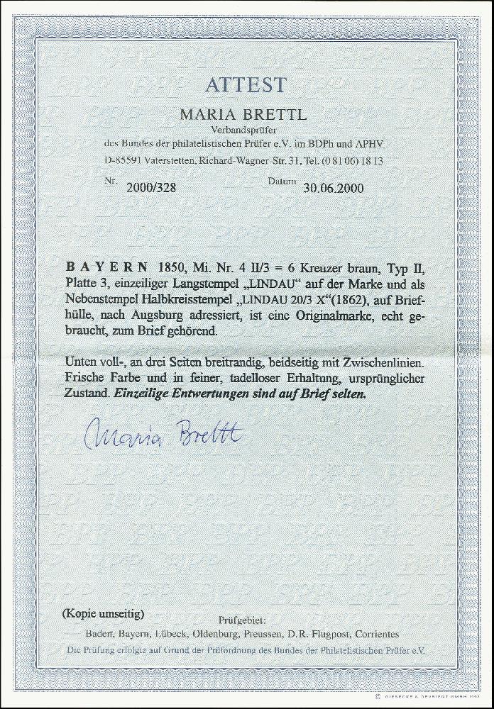 | Prüfer: | Brettl, Maria (BPP (Bund Philatelistischer Prüfer)) |
