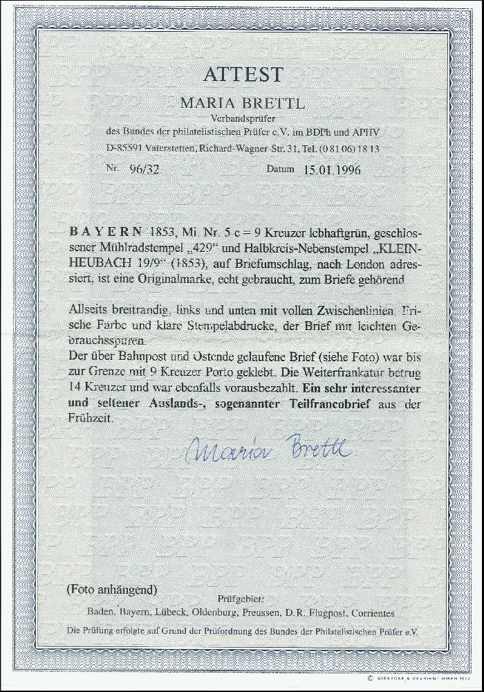 | Prüfer: | Brettl, Maria (BPP (Bund Philatelistischer Prüfer)) |