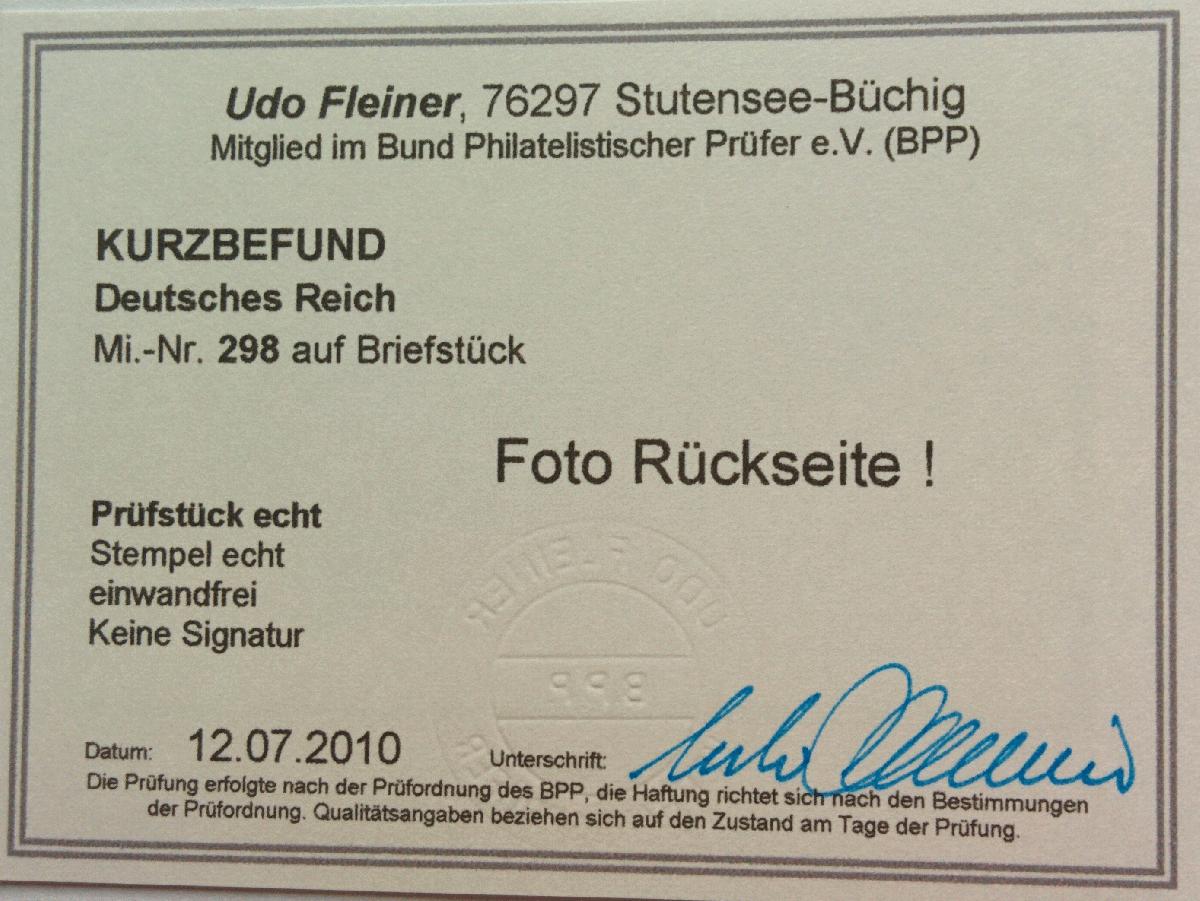 | Prüfer: | Fleiner, Udo (BPP (Bund Philatelistischer Prüfer)) |