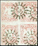 | Zusatzinformationen und Suchstichworte: | 378. Auktion Heinrich Köhler 21.-26. März 2022 Los 7103 3 Kreuzer rosa im Viererblock, sehr schön farbfrisch und voll-bis meist breitrandig geschnitten, sehr schön entwertet durch glasklar aufgesetzten gMR “231” KADOLZBURG. Eine leichte waagerechte Vorfallt-Spur zwischen den Paaren berührt die Marken nicht. Ein attraktiver und seltener Block in tadelloser Erhaltung. Signiert Schmitt BPP und Fotoattest Stegmüller BPP (2022) Zuschlag 540,00 EUR |