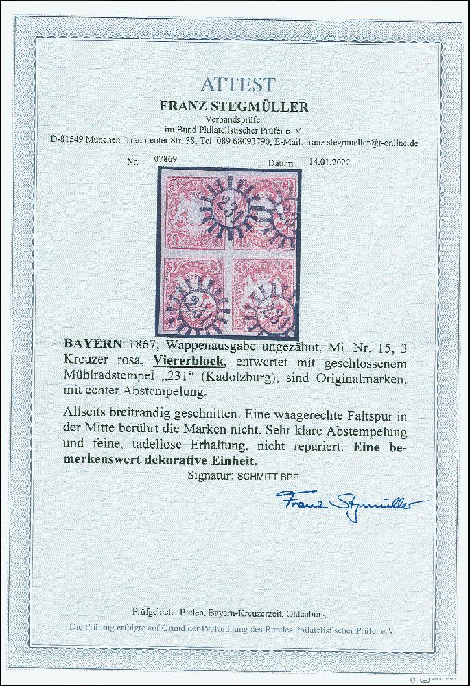 | Prüfer: | Stegmüller, Franz (BPP (Bund Philatelistischer Prüfer)) |