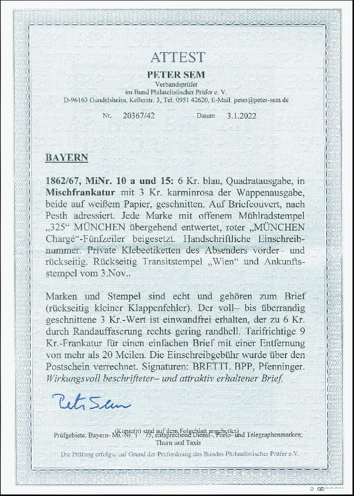| Prüfer: | Sem, Peter (BPP (Bund Philatelistischer Prüfer)) |