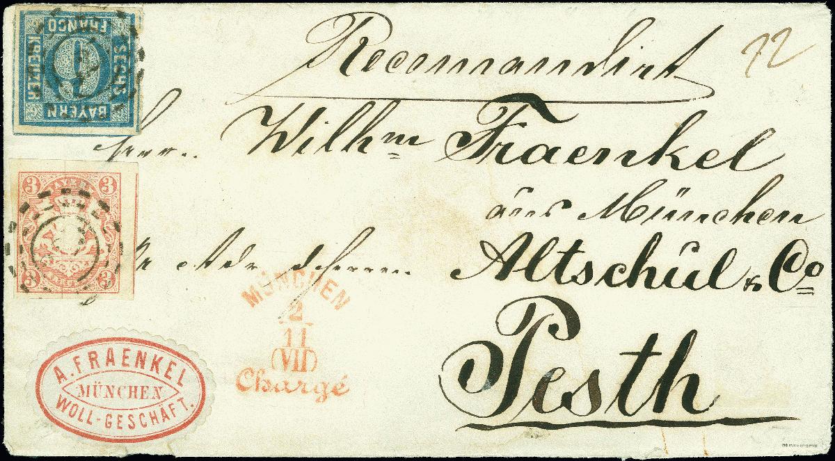 | Zusatzinformationen und Suchstichworte: | 378. Auktion Heinrich Köhler 21.-26. März 2022 Los 7107 3 Kreuzer rosa, voll-bis überrandig, rechts mit Teil der Nachbarmarke, in Mischfrankatur mit Quadratsausgabe 6 Kreuzer blau, durch Randauffaserung links teils minimal berührt, sonst ebenfalls voll- bis breitrandig, beide farbfrisch, mit oMR „325“ und nebengesetztem roten „MÜNCHEN 2 11 (VII) Chargé“ auf eingeschriebenem Briefkuvert nach Pesth. Das Kuvert durch unsachgemäße Öffnung rückseitig unten nicht mehr ganz komplett, sonst einwandfrei. Ein attraktiver und in dieser Form seltener Brief im Wechselverkehr mit Österreich. Signiert Pfenninger und Fotoattest Sem BPP (2022) Zuschlag 750,00 EUR |