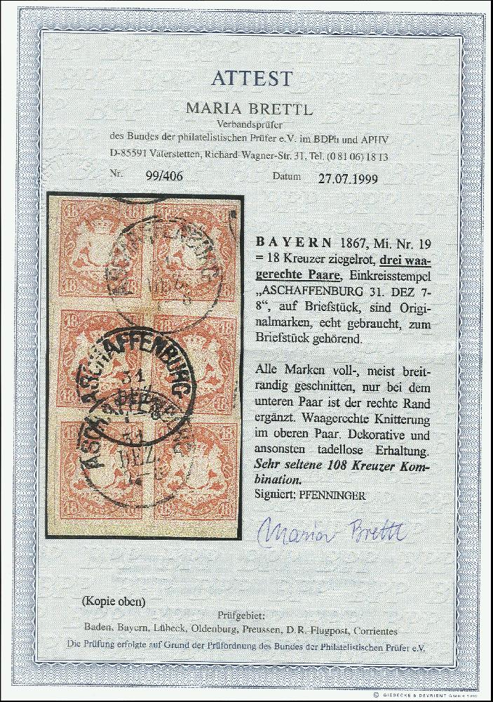 | Prüfer: | Brettl, Maria (BPP (Bund Philatelistischer Prüfer)) |