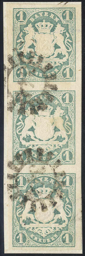 | Zusatzinformationen und Suchstichworte: | Deider 2. Online-Auktion 10. September 2022 Los 2025 Altdeutschland Bayern 1 Kr. dunkelblaugrün, senkr. Luxus-Dreierstreifen mit MR "344" NEUNBURG, Fotobefund Sem BPP. Ausruf 150,00 EUR |