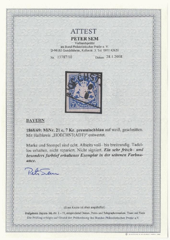 | Zusatzinformationen und Suchstichworte: | Deider 2. Online-Auktion 10. September 2022 Los 2044 Altdeutschland Bayern 7 Kr. preussischblau, Luxusstück in besonders tiefer und leuchtender Farbe auf dekorativem Briefstück mit vollem HK "WUNSIEDEL", Fotoattest Brettl BPP. Ausruf 500,00 EUR |