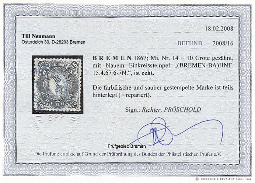 | Prüfer: | Neumann, Till (BPP (Bund Philatelistischer Prüfer)) |