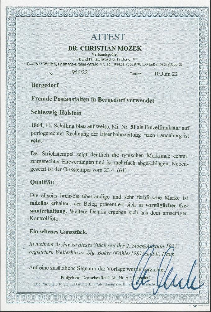 | Prüfgebiet: | Altdeutschland Bergedorf fremde Postanstalten |