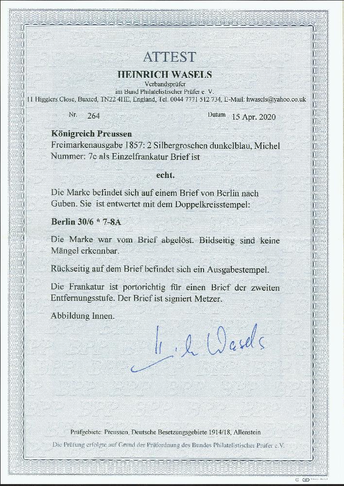 | Prüfer: | Wasels, Heinrich (BPP (Bund Philatelistischer Prüfer)) |