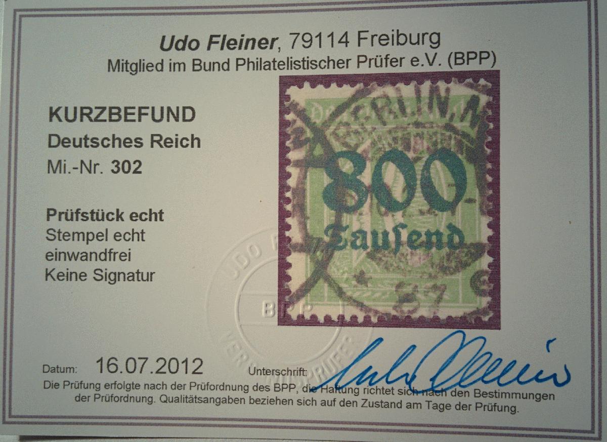 | Prüfgebiet: | Deutsches Reich 1919 - 1923 (Mi-Nr. 107 - 343) |