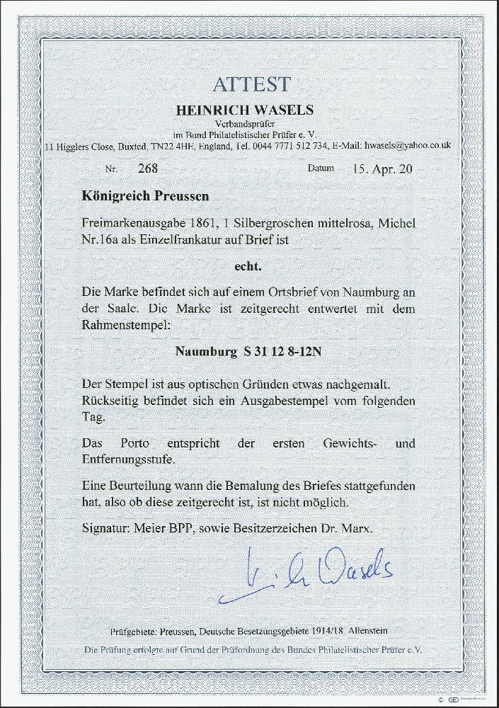 | Prüfer: | Wasels, Heinrich (BPP (Bund Philatelistischer Prüfer)) |