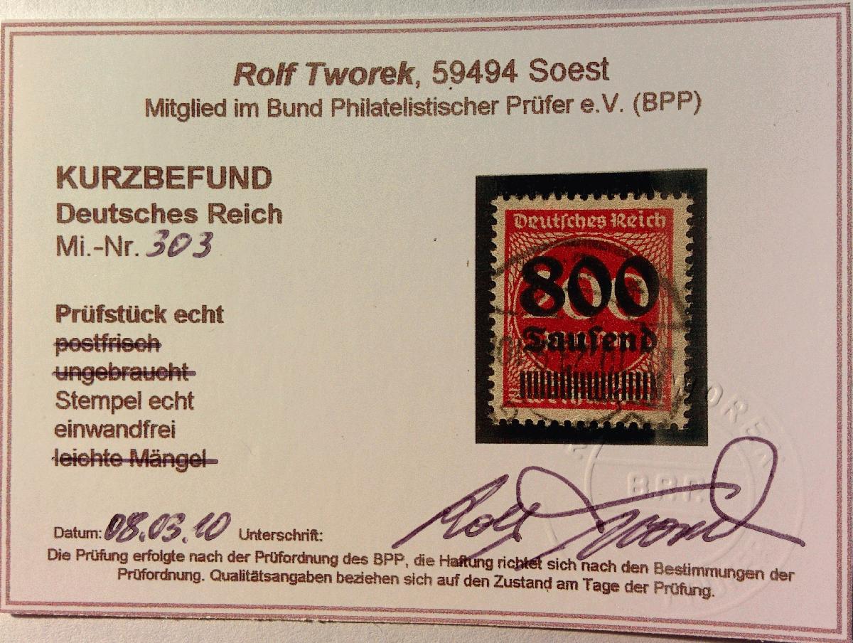 | Prüfgebiet: | Deutsches Reich 1919 - 1923 (Mi-Nr. 107 - 343) |