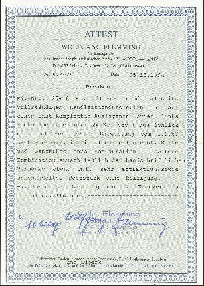 | Prüfer: | Flemming, Wolfgang (BPP (Bund Philatelistischer Prüfer)) |