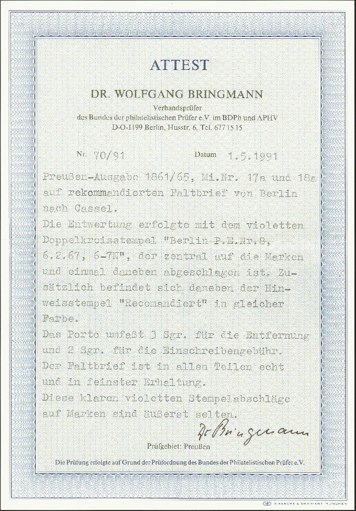 | Prüfer: | Bringmann, Wolfgang (BPP (Bund Philatelistischer Prüfer)) |