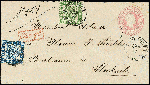 | Zusatzinformationen und Suchstichworte: | Rauhut & Kruschel - 213. Auktion 16. - 17. September 2022 Los 26 Altdeutschland Baden 6 Kr. preußischblau in Mischfrankatur mit 1 Kr. grün, vollzähnige Kabinettstücke auf Ganzsache 3 Kr. blaßrosa, als Einschreibebrief der 2. Gewichtsstufe von "Donaueschingen" (K2) nach Stockach. Literaturbekannter Brief mit einmaliger Kombination, Attest Brettl Zuschlag 650,00 EUR |