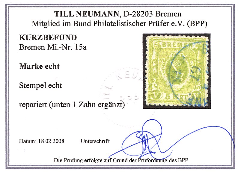 | Prüfer: | Neumann, Till (BPP (Bund Philatelistischer Prüfer)) |