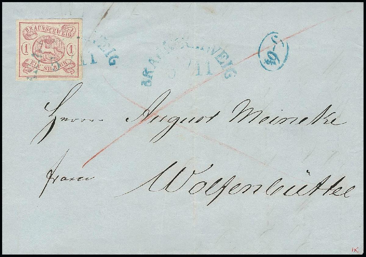 | Zusatzinformationen und Suchstichworte: | Rauhut & Kruschel - 213. Auktion 16. - 17. September 2022 Los 65 Altdeutschland Braunschweig 1 Sgr. lilarosa, breitrandiges Kabinettstück auf Faltbrief in seltener Inlands-Verwendung mit HK "Braunschweig" und nebengesetztem kleinem Stundenstempel nach Wolfenbüttel, wobei die 1 Sgr. als 9 Ggr. wertete. Seltene Frankatur, 1852. Sign. Krause und Attest Wilderbeek. Mi. 2000,- Zuschlag 700,00 EUR |