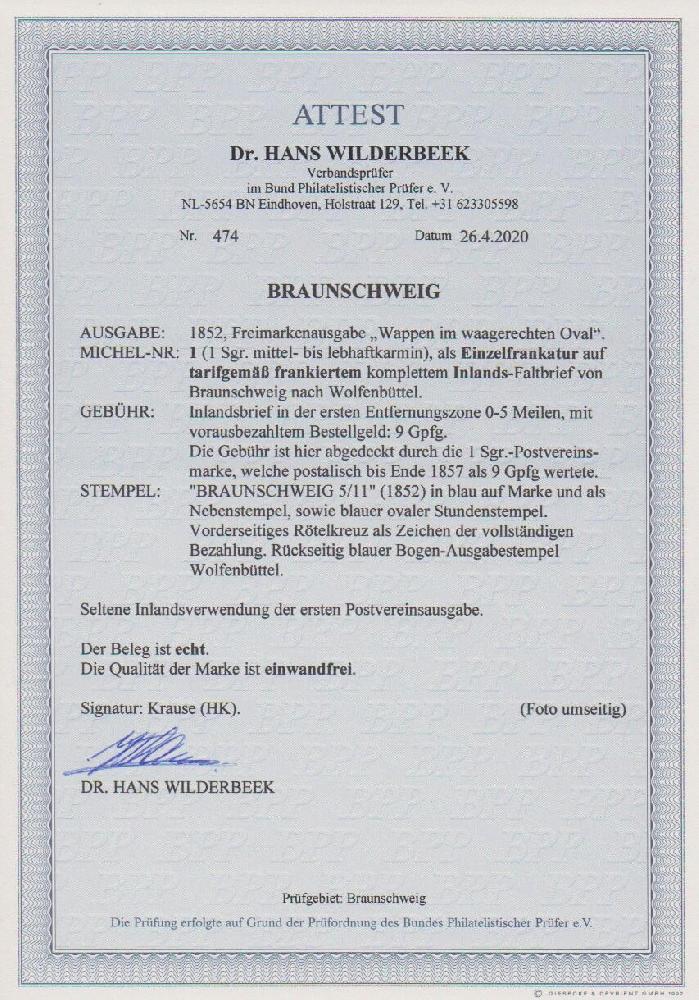 | Prüfgebiet: | Altdeutschland Braunschweig |