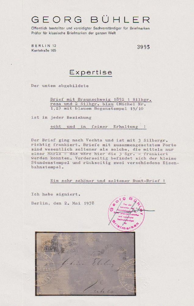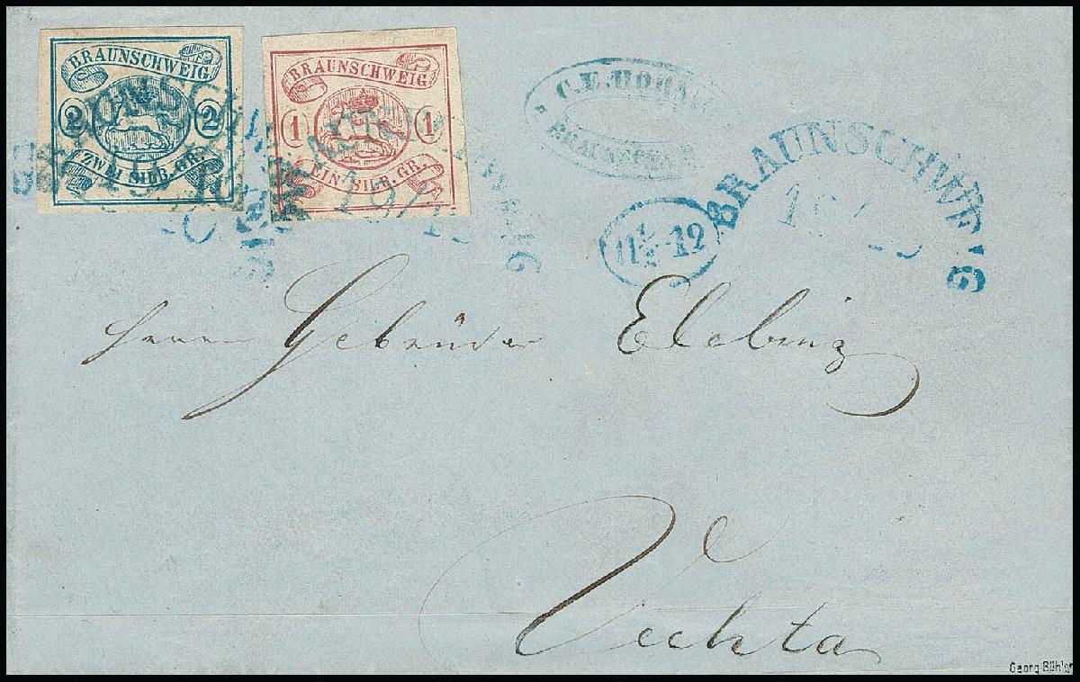 | Zusatzinformationen und Suchstichworte: | Rauhut & Kruschel - 213. Auktion 16. - 17. September 2022 Los 69 Altdeutschland Braunschweig 1 Sgr. lilarosa und 2 Sgr. blau, Kabinettstücke auf gef. Brief mit HK "Braunschweig" und kleinem Stundenstempel nach Vechta. Buntfrankaturen der ersten Ausgabe sind stets selten. Referenz: Loth-Auktion 1978, Los 1247, ArGe-Rundbrief Nr. 66/Nov. 2009, Register Nr. 5, S. 5, sign. mit Attest Bühler, sign. Brettl Ausruf 1.500,00 EUR |