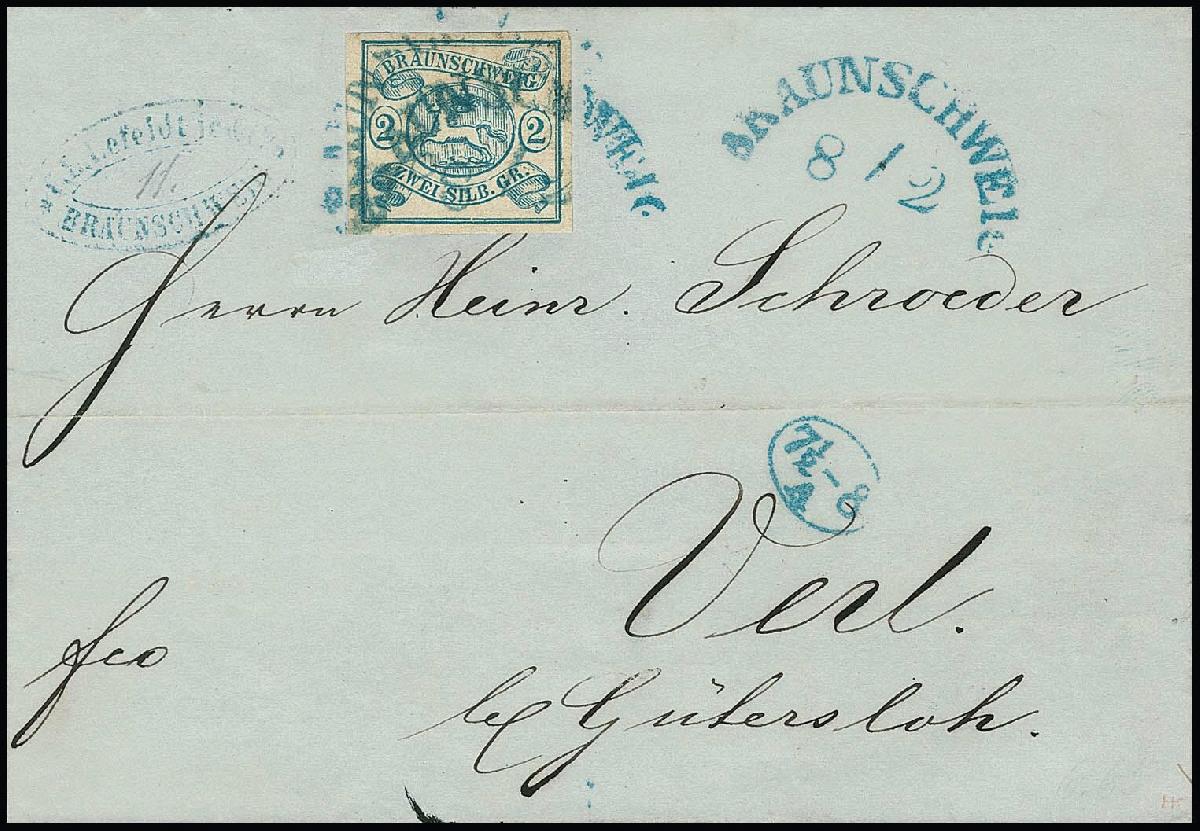 | Zusatzinformationen und Suchstichworte: | Rauhut & Kruschel - 213. Auktion 16. - 17. September 2022 Los 1508 Altdeutschland Braunschweig 2 Sgr. blau, breitrandiges Kabinettstück mit doppeltem HK "Braunschweig" und nebengesetztem Stundenstempel auf Faltbrief aus bekannter Korrespondenz nach Verl. Mi. 1200,-, sign. Köhler, Krause und Attest Lange Zuschlag 340,00 EUR |