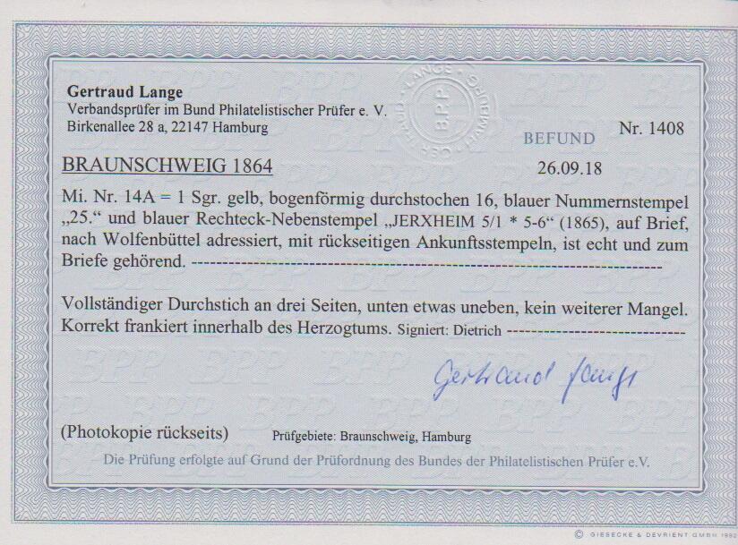 | Zusatzinformationen und Suchstichworte: | Rauhut & Kruschel - 213. Auktion 16. - 17. September 2022 Los 1654 Altdeutschland Braunschweig "25" nebst Ra2 "Jerxheim", je in blau, auf Briefchen 1 Sgr. gelborange (unten etwas unebener Durchstich), Fotoexp. Lange Zuschlag 54,00 EUR |