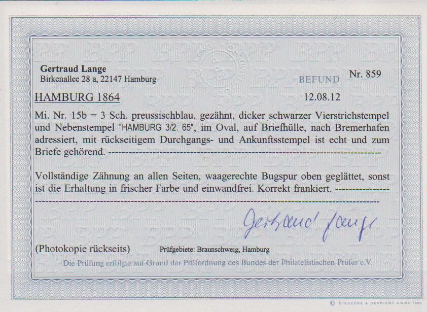 | Prüfgebiet: | Altdeutschland Hamburg |