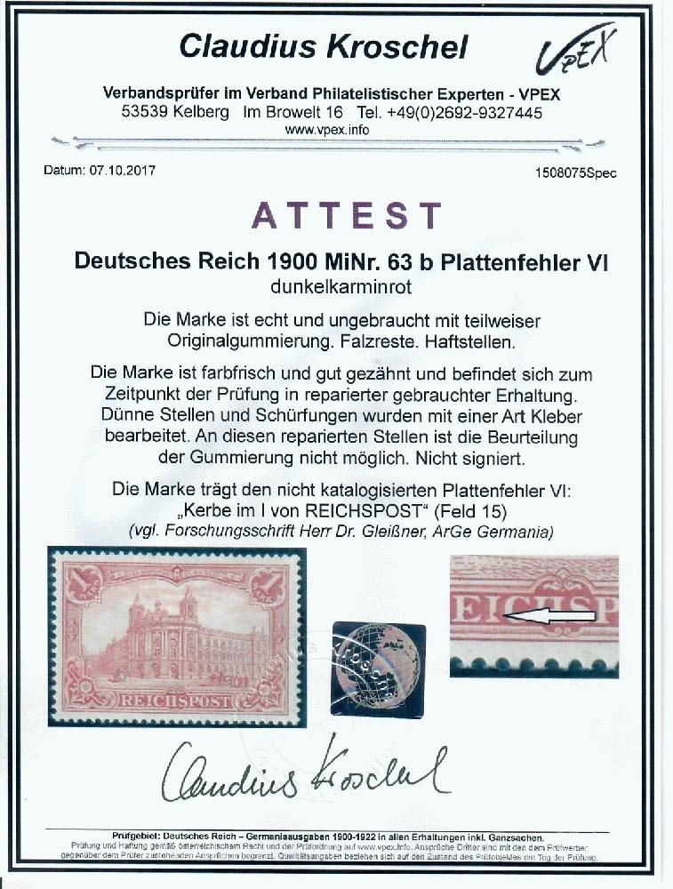 | Prüfer: | Kroschel, Claudius (VPEX (Verband Philatelistischer Experten)) |