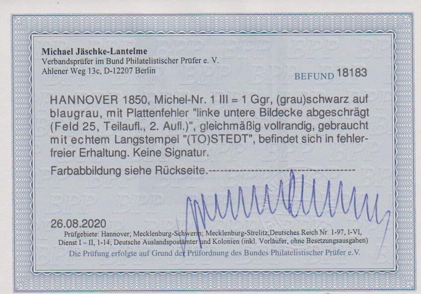 | Prüfer: | Jäschke-Lantelme, Michael (BPP (Bund Philatelistischer Prüfer)) |