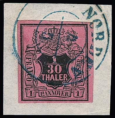 | Zusatzinformationen und Suchstichworte: | Rauhut & Kruschel - 213. Auktion 16. - 17. September 2022 Los 1950 Altdeutschland Hannover 1/30 Th. schw./himbeerrot, kopfstehendes Wasserzeichen, auf Kabinettbriefstück mit K2 "Norden", Fotoexp. Berger. Mi. 300,- Zuschlag 90,00 EUR |